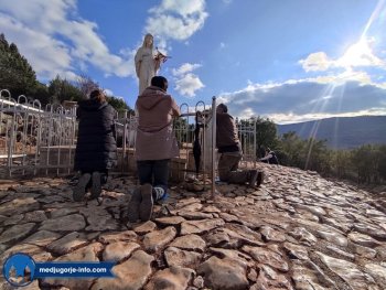 E sad.. Što su mi vrijedili predhodni odlasci kada sam samo tražila: Majko, daj mi ovo, majko daj mi ono .. A što sam ja dala za majku !!! Za našeg oca!!!! Mislila sam da ce to što budem išla bosa nešto pomoći , eh..sramim se sada svega toga .. !!! Naša majka čita iz dubine našeg srca , u tom slučaju bose i ranjave noge ne vrijede ama bas ništa!!! E sada da se vratimo na 25.10 i moje hodočašće u Međugorje .. Kročivši na samo tlo svetog mjesta osjećala sam se jako loše, brzi otkucaji srca, pritisak u glavi, užasno gubljenje tla pod nogama, mislila sam da će me hitna odvesti.. I tada sam rekla: Isuse, predajem ti svoj život, radi s njim što je volja tvoja .. i sve tako do Brda ukazanja, molila sam svim srcem, svakim atomom svoga bića.. Osjetila sam prisutnost nečeg svetog, ljubav, radost, došli smo do kipa naše Majčice.. Kleknula sam pred nju i molila, prikazala joj sve što me je boljelo, razaralo, sve što nisam mogla prihvatiti. Tada sam začula njen glas..